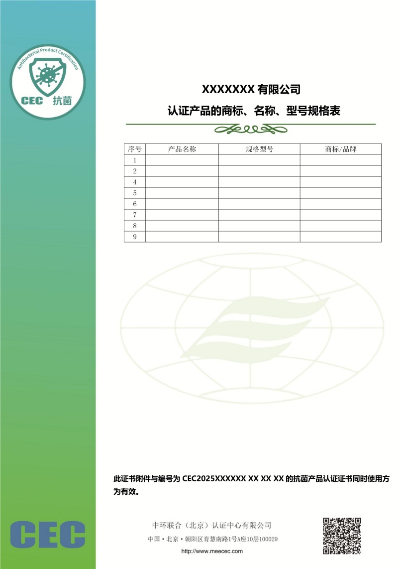 抗菌產(chǎn)品認證證書模版