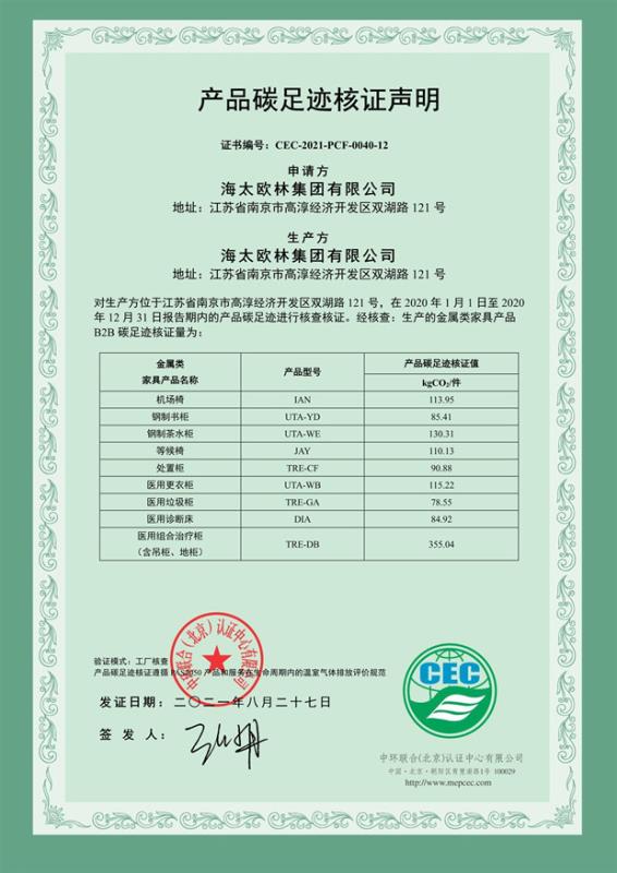 下一篇:海太歐林集團(tuán)有限公司-產(chǎn)品碳足跡證書-CEC-2021-PCF-0040-11-金屬類家具