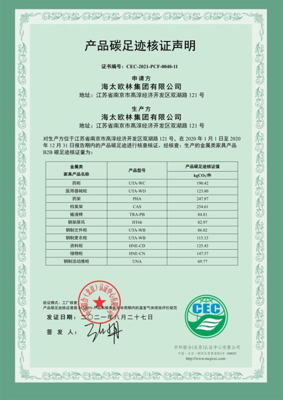 下一篇:海太歐林集團有限公司-產品碳足跡證書-CEC-2021-PCF-0040-10-軟體類家具