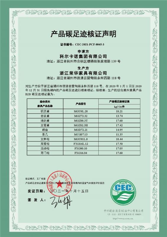 上一篇:浙江榮華家具有限公司碳足跡核證聲明-CEC-2021-PCF-0045-4-綜合類木家具