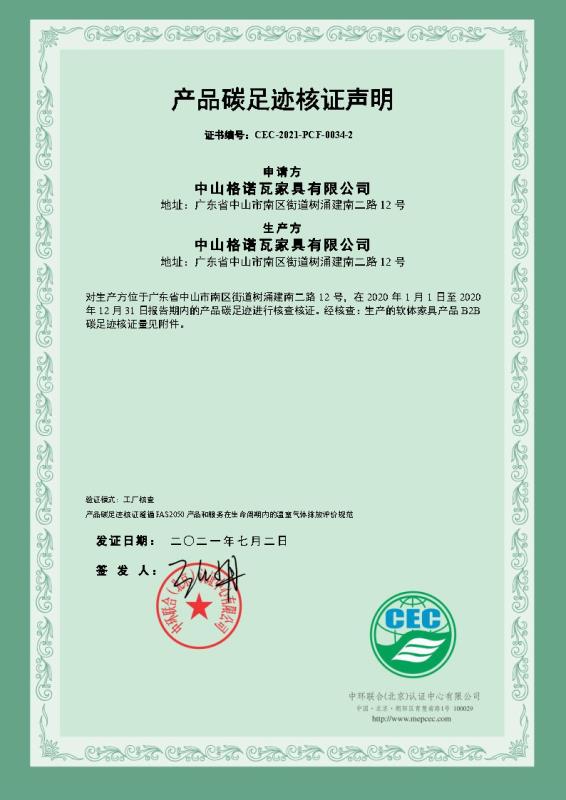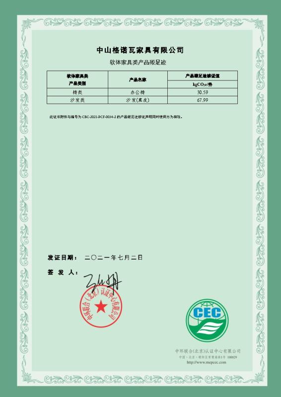 上一篇:中山格諾瓦家具有限公司碳足跡核證聲明-CEC-2021-PCF-0034-1-涂飾人造板類家具