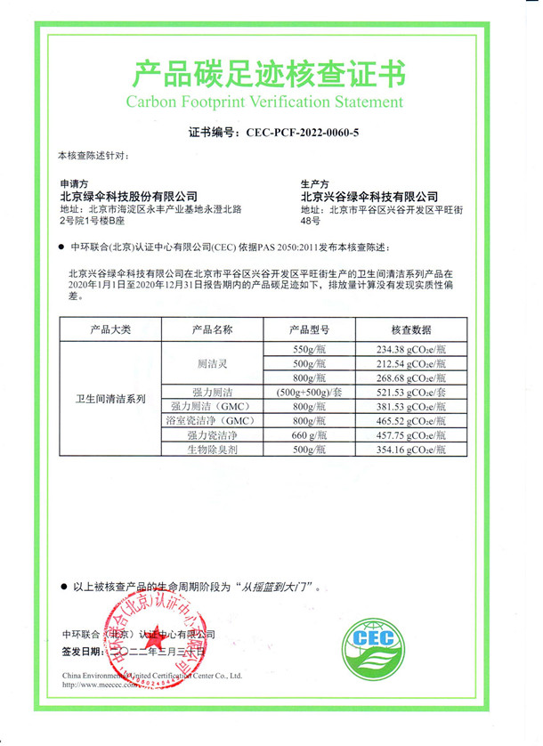 上一篇:北京興谷綠傘科技有限公司-CEC-PCF-2022-0060-6-廚房清潔系列