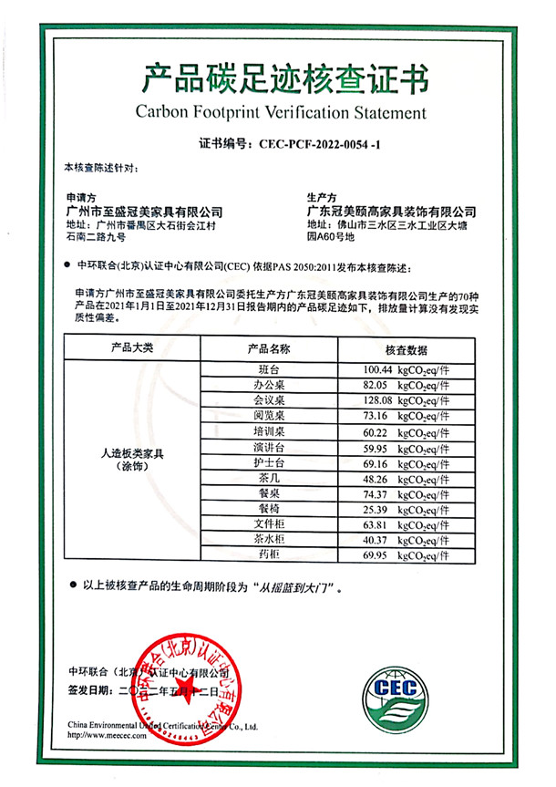 下一篇:珠海勵致洋行辦公家私有限公司-CEC-PCF-2022-0057
