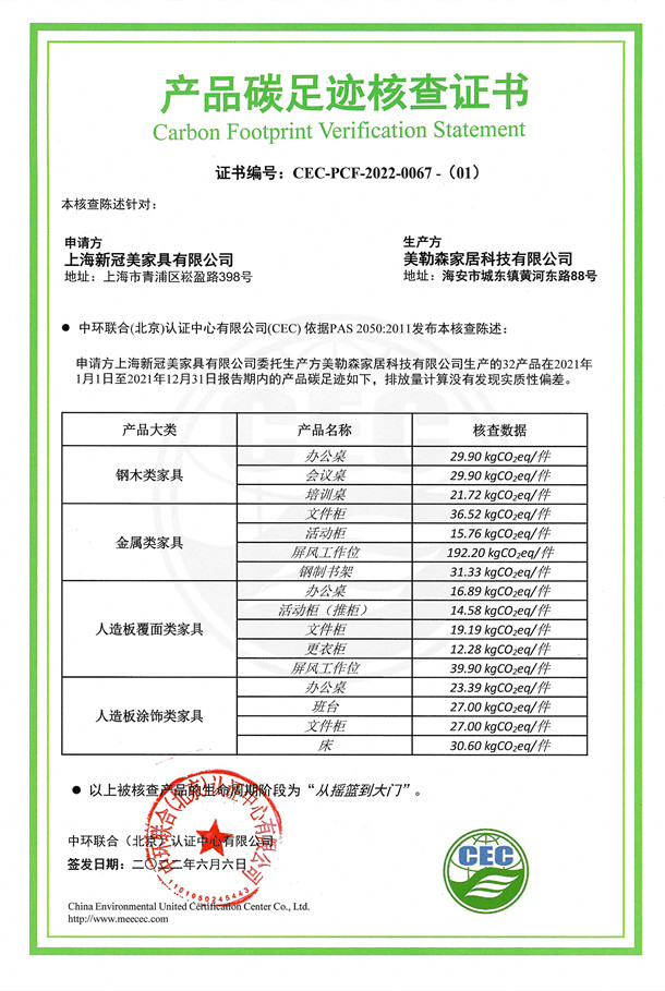 上一篇:美勒森家居科技有限公司-CEC-PCF-2022-0067-(02)-軟體類家具+實木類家具