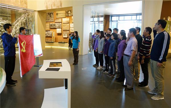 在塞罕壩展覽館內幾代塞罕壩人艱苦奮斗的影像前,中環聯合支部黨員面對黨旗,高舉右拳,莊嚴宣誓,重溫入黨誓詞, 勵志不忘初心,牢記使命,增強“四個意識”,堅定“四個自信”,強化責任擔當,踐行“三嚴三實”,慎始慎終、慎獨慎微,涵養操守、端正品行,立黨為公、執政為民,始終保持共產黨人清正廉潔的政治本色,不斷推動新時代中國特色社會主義事業的偉大勝利。