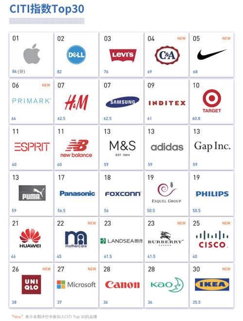 本期評(píng)價(jià)涵蓋142個(gè)大中華區(qū)品牌,其中排名最高的是富士康、溢達(dá)和華為。華為公司蟬聯(lián)中國(guó)內(nèi)地排名最高的品牌,而朗詩(shī)綠色集團(tuán)同樣有優(yōu)秀表現(xiàn)。這四家品牌均進(jìn)入標(biāo)志綠色供應(yīng)鏈全球領(lǐng)先的CITI指數(shù)TOP30榜單。