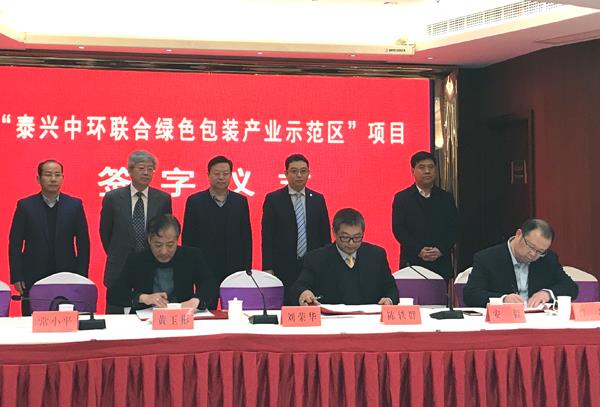 會議期間,在泰興市常務副市長劉榮華、塑包委黃玉彬副主任和陳軼群副總經(jīng)理及各位與會專家的見證下,中環(huán)聯(lián)合總經(jīng)理助理曹磊與泰興市城區(qū)工業(yè)園區(qū)管委會主任常小平、塑包委秘書長安毅共同簽署“泰興中環(huán)聯(lián)合綠色包裝產(chǎn)業(yè)示范區(qū)”項目合作協(xié)議。