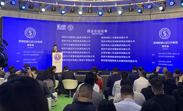2021年初,深圳市向全國開放深圳標準認證申請,認證工作首先在家具行業試點。展會期間,由深圳標準工作領導小組辦公室、深圳市場監督管理局主辦,深圳標準認證聯盟、深圳市家具行業協會承辦的“深圳標準認證工作新聞發布會”隆重舉行。發布會上,深圳市場監管局公布了自今年初宣布深圳標準認證家具行業向全國開放后首批獲證企業名單,深圳市政府副秘書長黃強,中國輕工業聯合會黨委副書記、中國家具行業協會理事長徐祥楠,深圳市市場監管局黨組成員、副局長李軍等領導出席。參會嘉賓共同為獲證企業頒發證書。此次發布會上共頒發深圳標準認證證書30家,其中,中環聯合承擔了浙江圣奧家具制造有限公司等7家企業的認證實施工作。