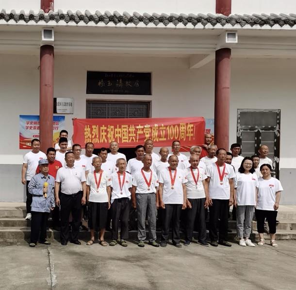 7月1日一大早,馮家林早早來到村委會,幫忙連接直播信號、調試投影設備,張羅著給老黨員們換上T恤衫。7點左右,雄壯的國歌聲響起,鮮艷的五星紅旗在隨州南邊山區這個小村莊冉冉升起。接著,馮家林與支部黨員共同觀看了慶祝建黨百年大會直播。并為村里6名老黨員佩戴上上級黨組織頒發的“光榮在黨50年”紀念章,聽包村干部講主題黨課,參觀了抗戰老兵楊玉林的故居。