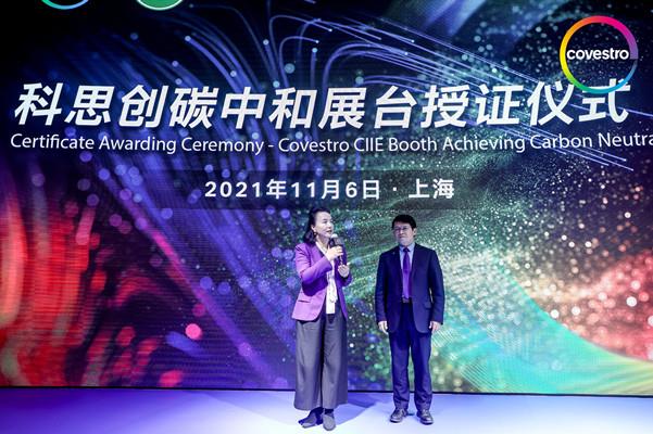 中環(huán)聯(lián)合為科思創(chuàng)進(jìn)博會首秀頒發(fā)碳中和認(rèn)證證書
