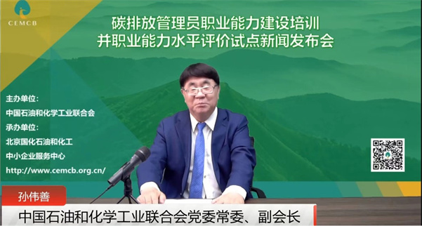 本次新聞發(fā)布會由碳排放管理員新職業(yè)的發(fā)起單位中國石油和化學工業(yè)聯(lián)合會產業(yè)發(fā)展部戚志強主任主持,中國石油和化學工業(yè)聯(lián)合會黨委常委/副會長孫啟善、產業(yè)發(fā)展部李永亮副主任、國化中心王靜敏主任分別就碳排放管理員職業(yè)能力建設培訓和職業(yè)能力水平評價要求、碳排放管理員職業(yè)功能和工作內容及其應具備的知識和技能、碳排放管理員職業(yè)能力建設培訓及試點職業(yè)能力水平評價工作情況進行了介紹,3家培訓平臺建設參與單位及4家基地代表參加了發(fā)布會。