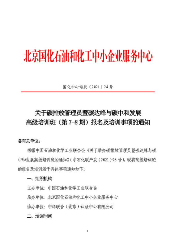關于碳排放管理員暨碳達峰與碳中和發展高級培訓班(第7-8 期)報名及培訓事項的通知