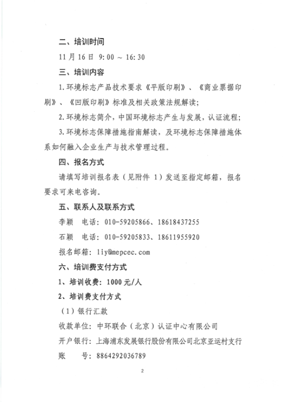 培訓通知-環境標志綠色印刷知識20211025附件報名表
