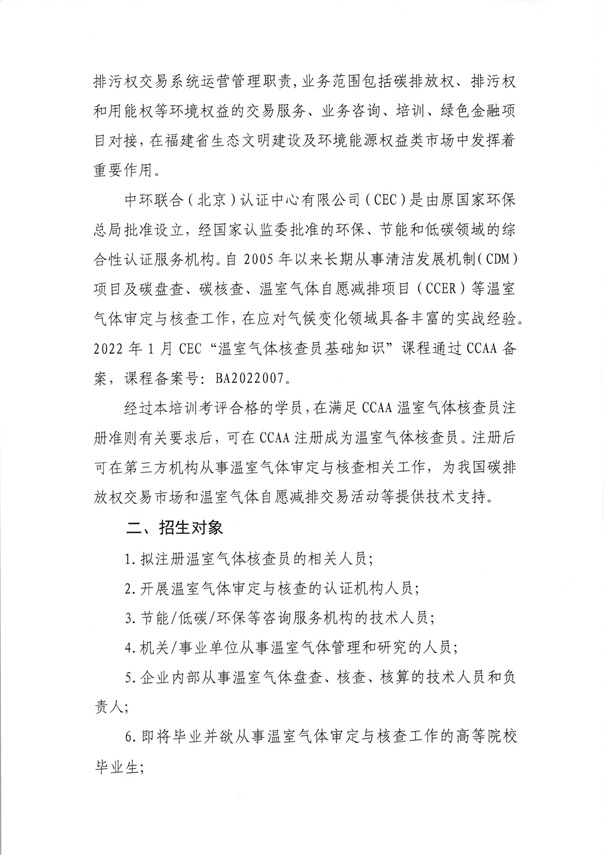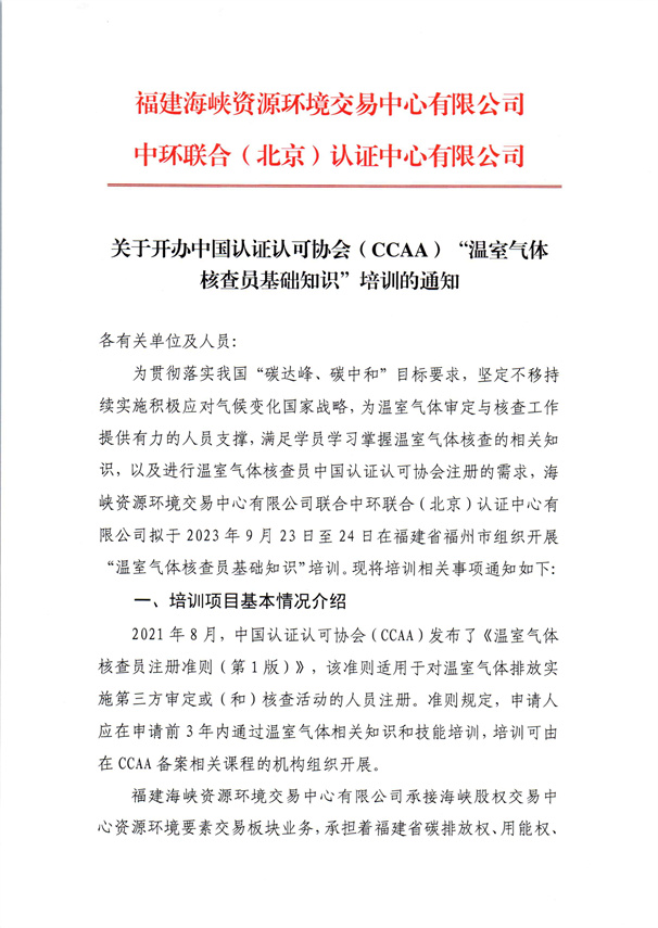 關(guān)于開辦中國認(rèn)可認(rèn)證協(xié)會(CCAA)“溫室氣體核查員基礎(chǔ)知識”培訓(xùn)的通知