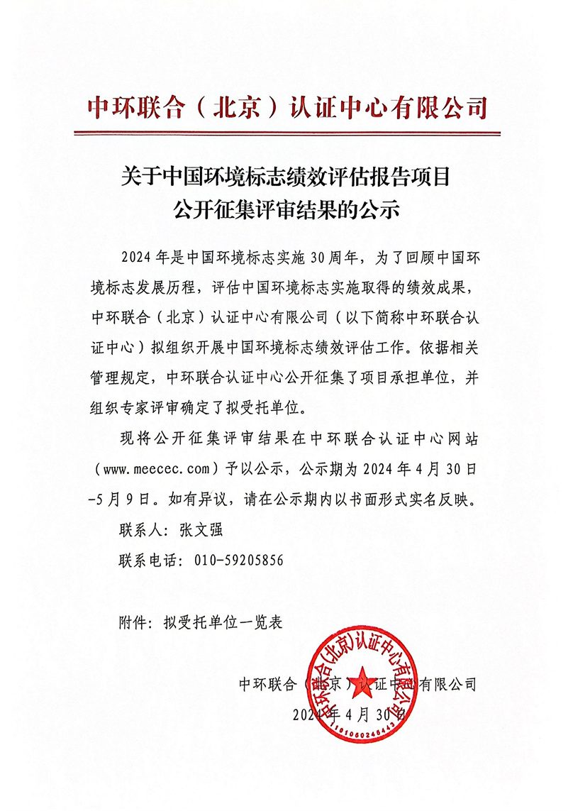 關(guān)于中國(guó)環(huán)境標(biāo)志績(jī)效評(píng)估報(bào)告公開(kāi)征集評(píng)審結(jié)果的公示