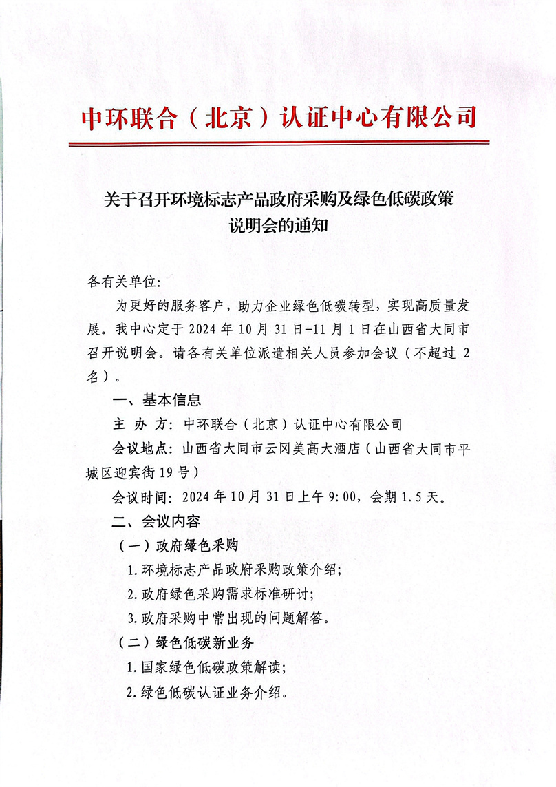 關(guān)于召開環(huán)境標志產(chǎn)品政府采購及綠色低碳政策說明會的通知