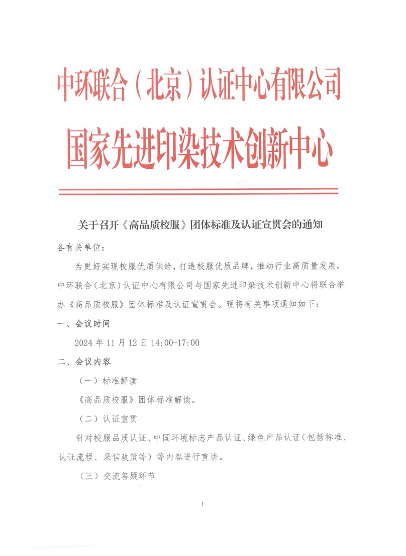 關于召開《高品質校服》團體標準及認證宣貫會的通知